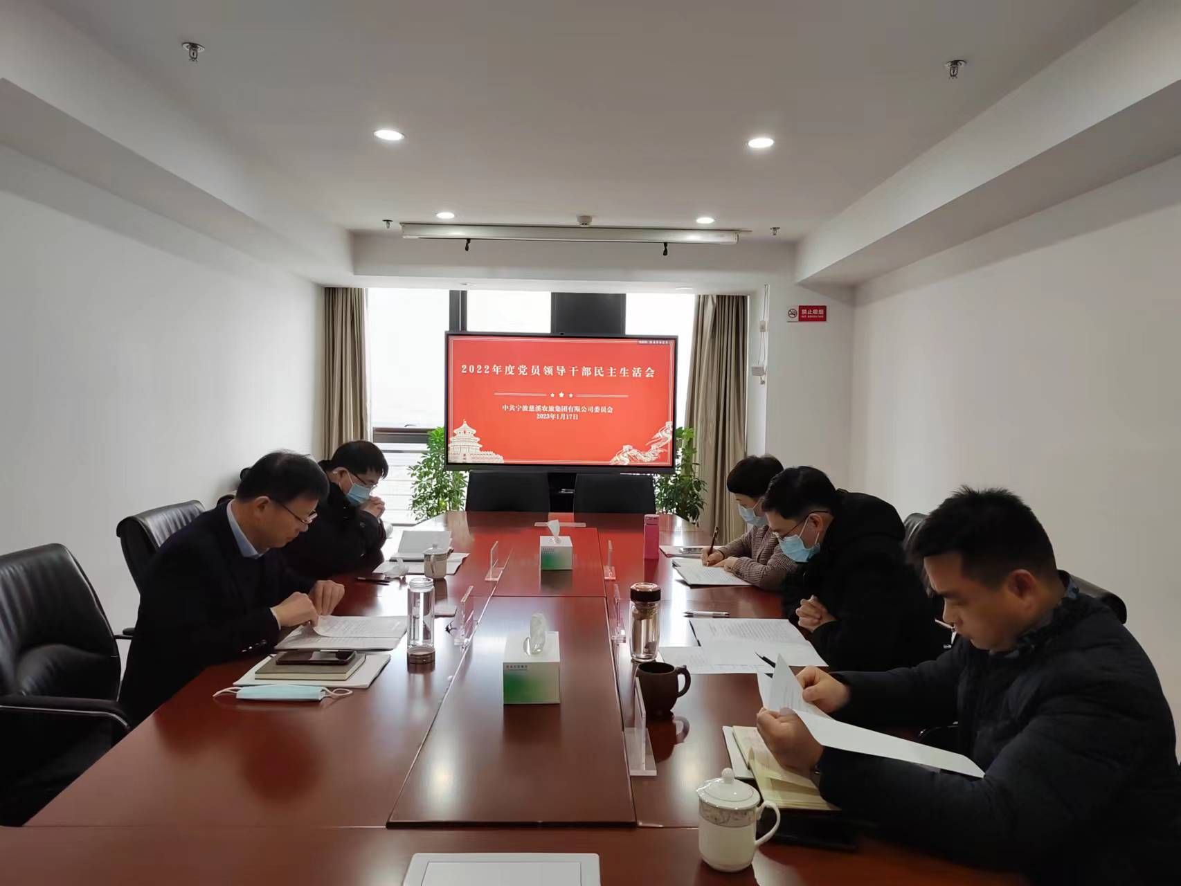 1月17日,慈溪農旅集團黨委召開2022年度黨員領導干部民主生活會。集團黨委班子全體成員參加會議,市派駐第八紀檢監(jiān)察組韓沖波同志到會督導。